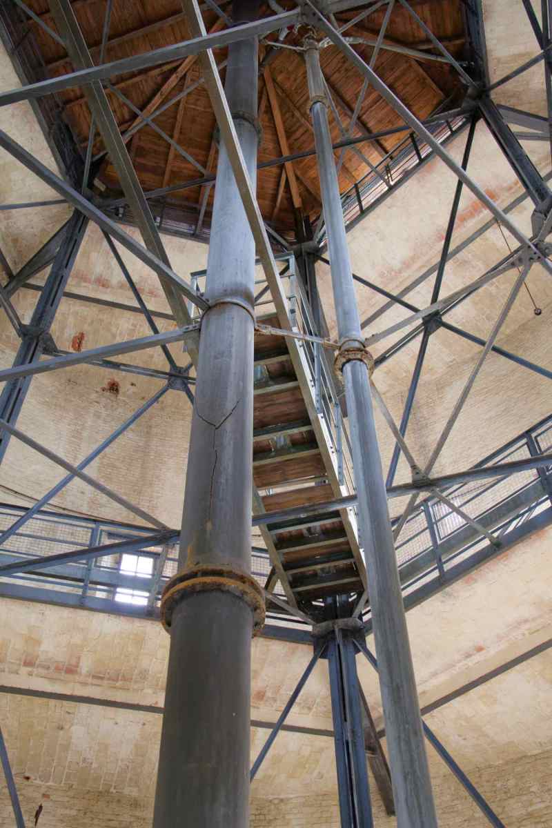 Wir trafen uns mit der fachkundigen Stadtführerin Anna Büge vor dem Obelisken am Seegarten, die uns nach einer freundlichen Begrüßung Einzelheiten zum Nordtor und dem imposanten Gebäude der Hauptverwaltung der Pulvberfabrik vermittelte. An einem Relief-Modell wurde uns ein Überblick über das gesamte Werksgelände gezeigt. Außerdem erfuhren wir Fakten zur Geschichte der Pulverfabrik.Der Bau der preußischen Pulverfabrik mit 400 Fabrikgebäuden und zusätzlich 172 Wohnungen wurde 1914 begonnen. Innerhalb von zwei Jahren wurden noch der 65 m hohe Wasserturm, ein Feuerwerkslaboratorium und der Bahnhof Kirchmöser in Betrieb genommen. Über 6000 Menschen waren bis zum Kriegsende 1918 dort beschäftigt. Wie im Versailler Vertrag nach Kriegsende festgelegt, mussten Pulverfabrik und Feuerwerkslaboratorium sofort liquidiert werden. 1919 übernahm die Deutsche Reichsbahn das Werk und wandelte es für Arbeiten zur Instandhaltung und Wartung von Lokomotiven, sowie für die Produktion von Gleisen um. Im zweiten Weltkrieg wurde das Werk zur Produktion von Panzern und Panzerteilen umfunktioniert, nach dem Krieg wurde das Gelände von der Roten Armee übernommen, sämtliche Produktionsanlagen demontiert und schon bis September 1945 in die Sowjetunion gebracht. Die Fabrikanlagen sind noch sehr gut erhalten und zum Teil frei erreichbar. Der Wasserturm darf nur innerhalb einer Führung besucht werden.